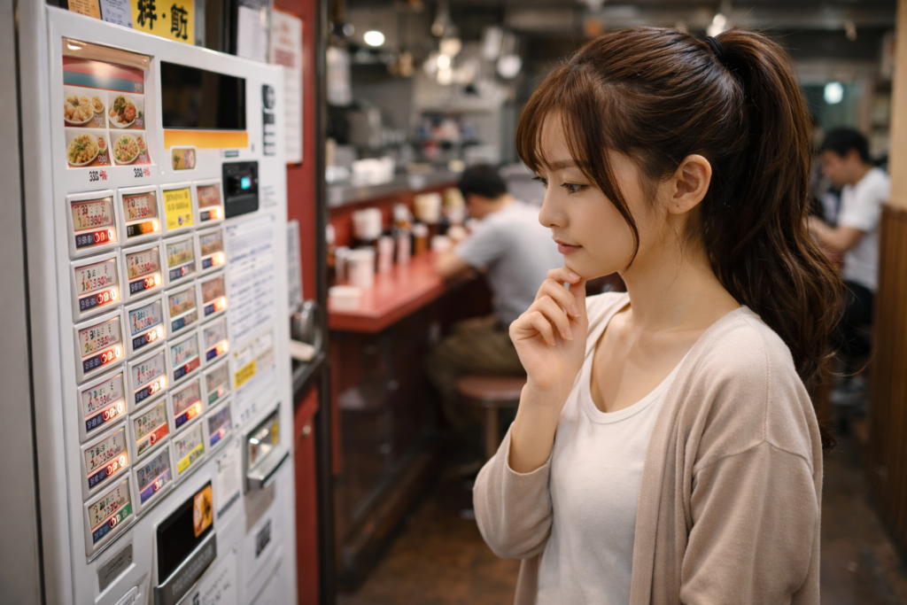 それでも不安が強くなりやすいのは、初めて訪れる人ほど「正解が分からない」状態に置かれるからです。周囲の客が黙々と食べている様子を見ると、自分の動きが目立っているように感じてしまい、必要以上に緊張してしまうことがあります。この感覚は、性別に限らず一人利用の初心者全般に共通するものと言えるでしょう。