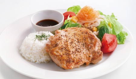 なかでも定番の「日替わりランチ(税込500円)」は、ワンコインでボリュームもあり、根強い人気を誇るメニューです。曜日ごとにハンバーグ、チキン、豚肉のにんにく醤油などのメインが変わり、プラス唐揚げやコロッケ等の副菜、キャベツ、ライス付きで満足のボリューム。ライスの大盛りが無料なのもうれしいポイントです。
