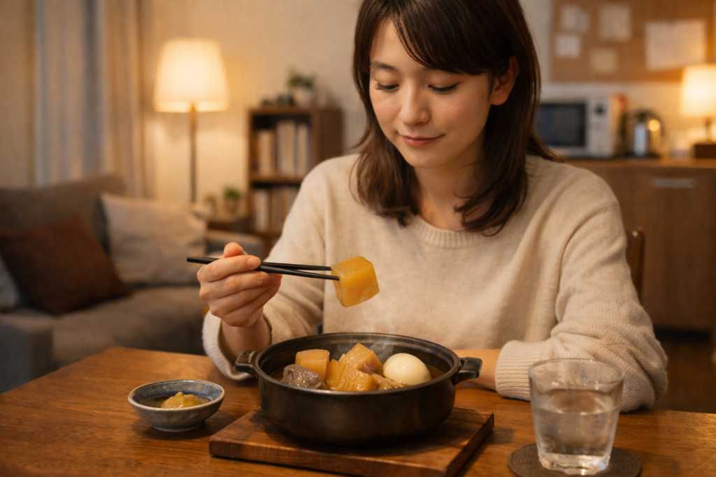 自炊のおでんは手間こそかかりますが、量や具材を完全に自分で調整できる点が最大の強みです。翌日に回せる具材を選べばコスパも安定しやすく、「今日はこのくらいでいい」という一人時間に合わせた食べ方がしやすくなります。