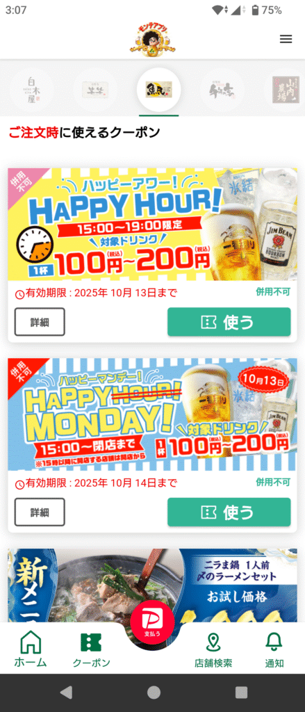 - ハッピーアワーはある?アプリ限定クーポンを活用しよう