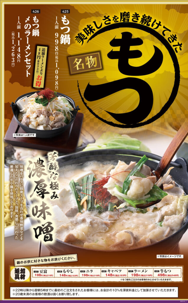 このほかにも、寒い季節に人気の「もつ鍋」は、魚民では一人前から注文できる店舗が多く、〆までしっかり味わえる満足度の高い一品。自分のペースで味わえるのがうれしいポイントです。